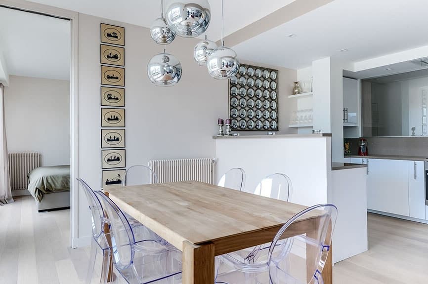Couleur Meuble Salle A Manger Avec Cuisine Ouverte. Vous pouvez utiliser la position d'un meuble pour diviser le plan d'une façon symbolique. Le plus souvent ce sera le bar de cuisine.
