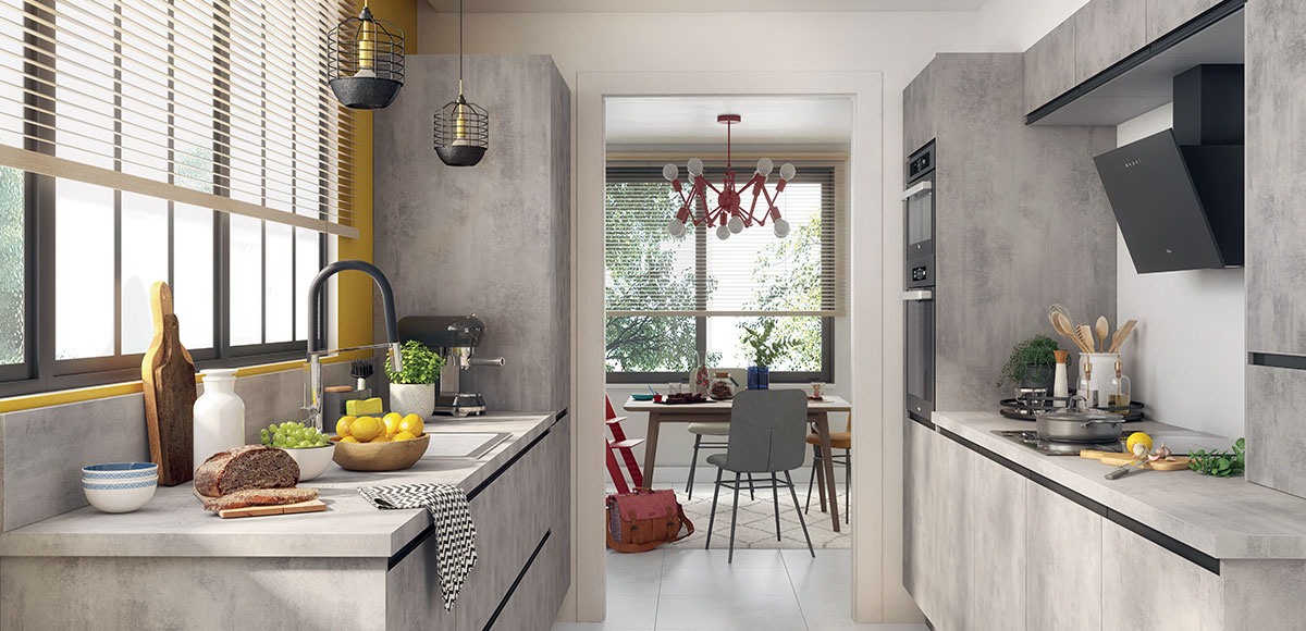 Cuisine En Couleur Gris Et Beton. Plan de travail et crédence en marbre. Dans cette capsule, hugo et kevin vous présentent une idée originale et intéressante qui ajoutera un petit accent industriel à votre cuisine.